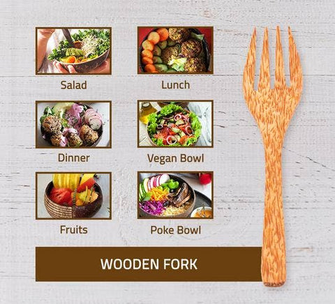 This coconut wood fork has a food-safe natural finish and can withstand daily use. Use as you would any eating fork for pasta, dessert, salad, fruit and more. Natural color and wood grain from coconut timber.