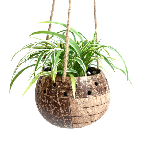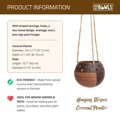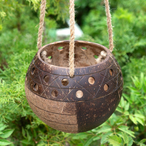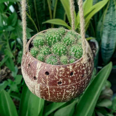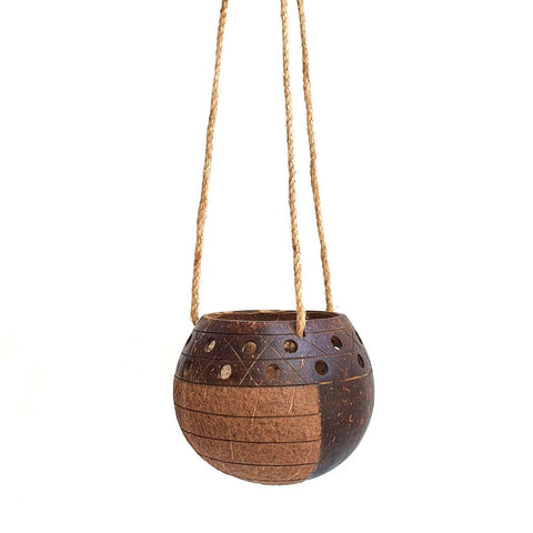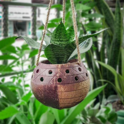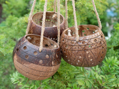 These hanging coconut planters provide eco-friendly, sustainable and stylish homes to your succulents, orchids, plant herbs, flower plants etc. They can be used both indoors and outdoors in your patio or garden. The drainage holes on the bottom helps to keep your coconut planter dry.