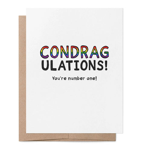 Your favorite queer just did the damn thing! Celebrate with this "condragulations, you're number one!"